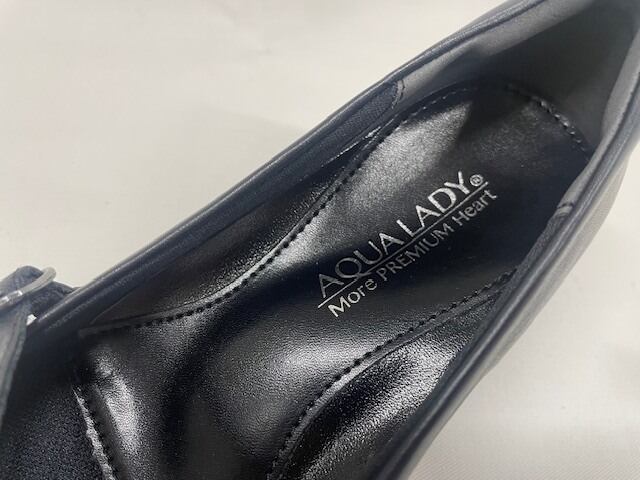 レディース 本革 ベルトパンプス アクアレディ 7051 ブラック ヒール 3.5cm